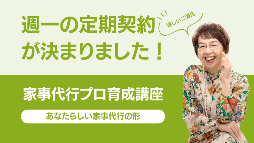 2026.02.06 生徒さんの声 言われた通りに実践したら、3月から週一回の家事代行定期契約が決まりました! 今日は朝から、わたしが運営する【家事代行養成講座】でした(*^^*) そこで、受講生さんより、嬉しい報告を頂きました。 言われた通りに実践したら、3月から週一回の家事代行定期契約が決まりました❣️ 彼女は、副業で家事代行を始めたのですが、ゆくゆくは【本業にしたい❣️】のです。 物ごとにはなんでも【目標】というものがあります。 彼女の最初の目標は【月10万円の収入を得ること】なのですが、 【受講してひと月目】に【達成】できたのです💖 今素直で可愛い熊本の家事代行さん。 わたしのアドバイスを素直に実践してくれてでた結果に、わたしも とても喜びを感じています。 わたし自身が、ご新規の家事代行契約を頂いたよりも嬉しい😆です これからも彼女の夢を全力応援いたします! 投稿ナビゲーション
